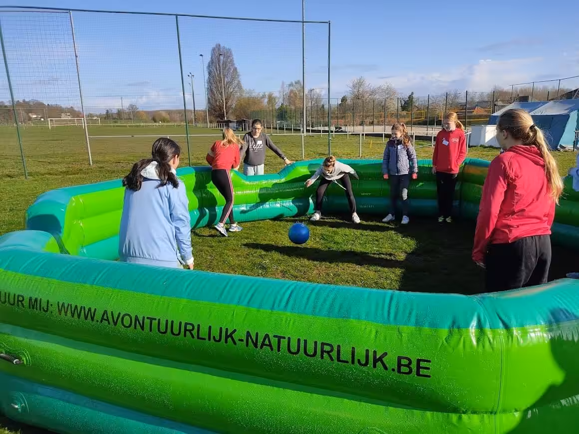 Wij verhuren een opblaasbare Gaga Ball pit, perfect voor sportdagen, kinderfeesten, schoolactiviteiten en bedrijfsevents.